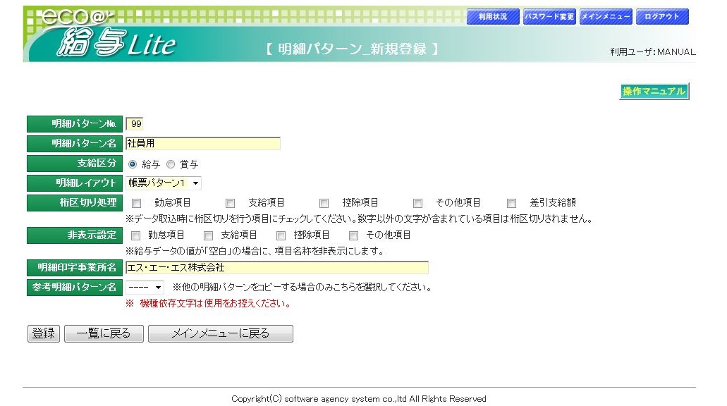 明細パターンの登録を行います。