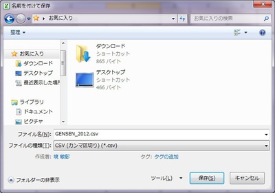 ③ 「名前を付けて保存」を実行し、”ファイルの種類”をCSVに変更して任意の場所に保存します。